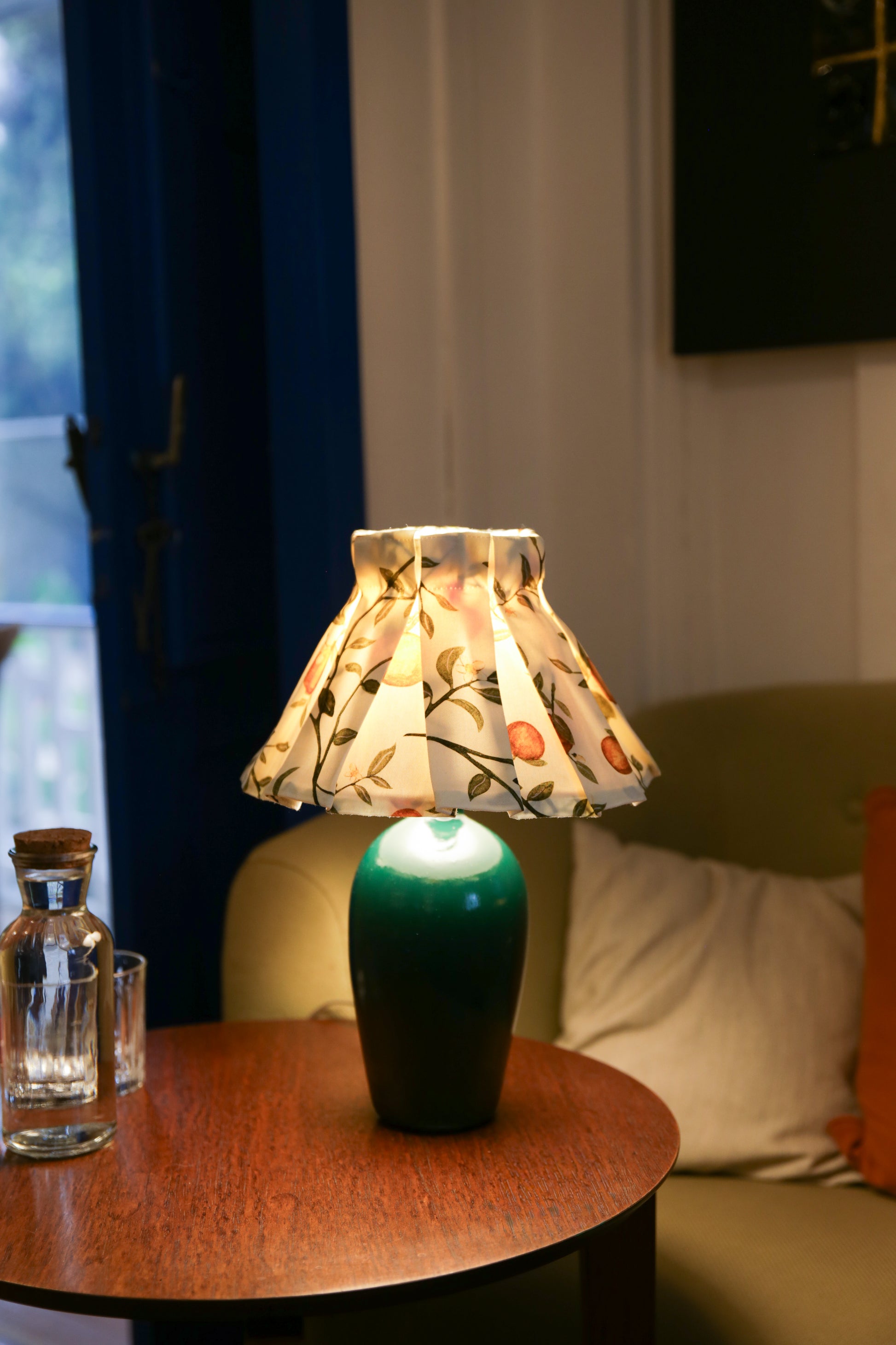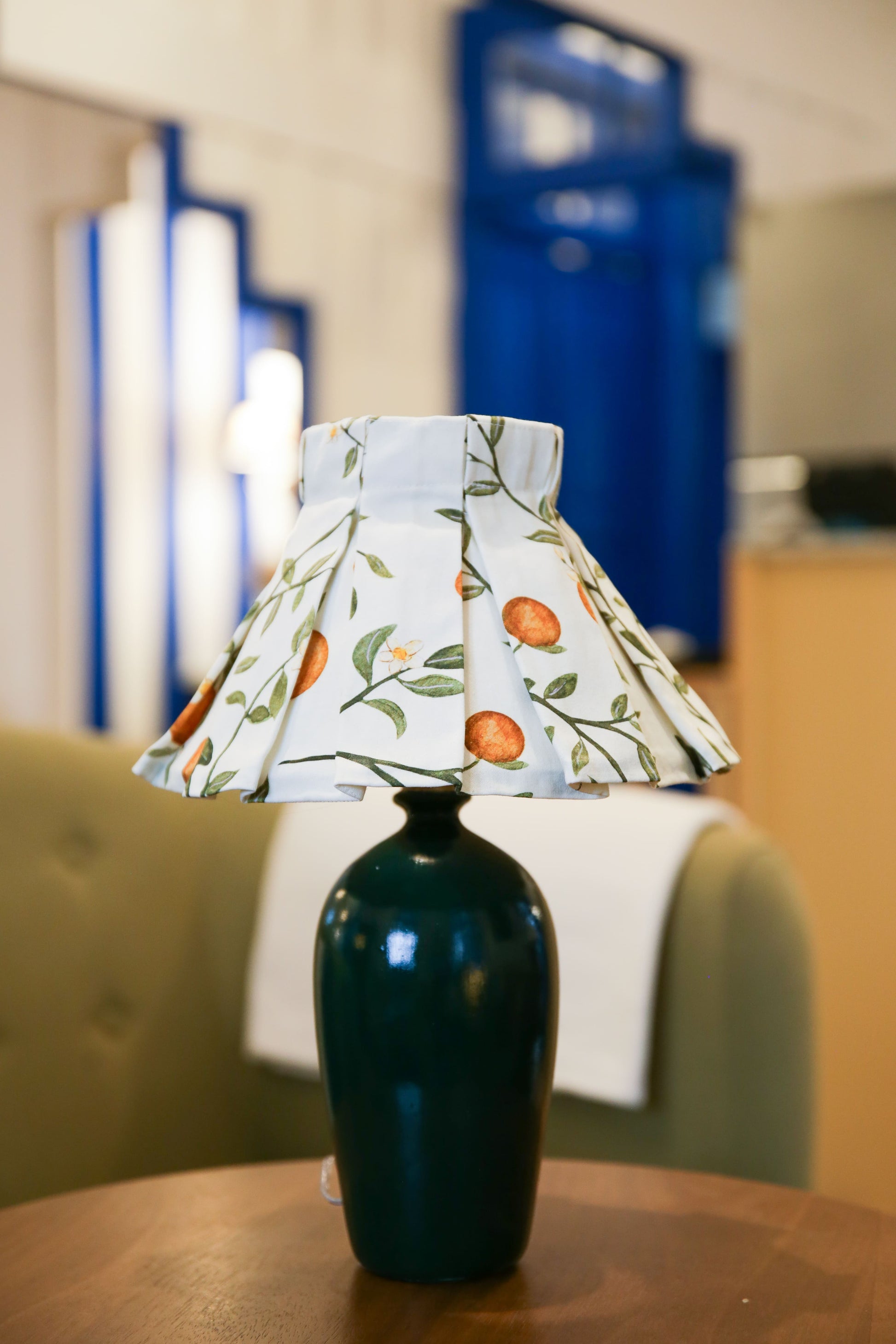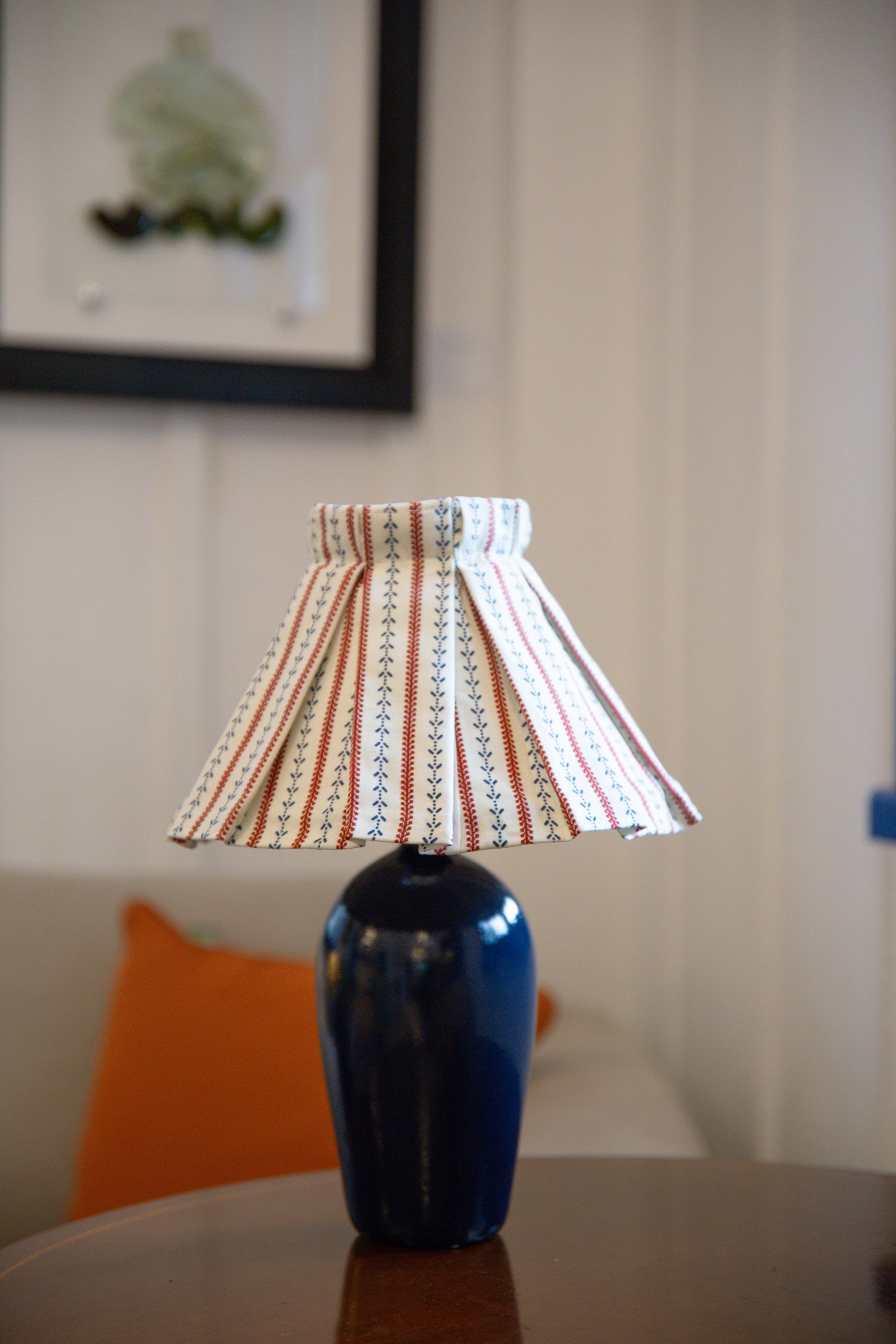 Luminária com base em cerâmica, pintada à mão, garantindo exclusividade em cada peça. Cúpula confeccionada em algodão cru (100% algodão) e sarja ideal para difusão suave e uniforme da luz. Bocal com acabamento dourado, compatível com soquete E27.