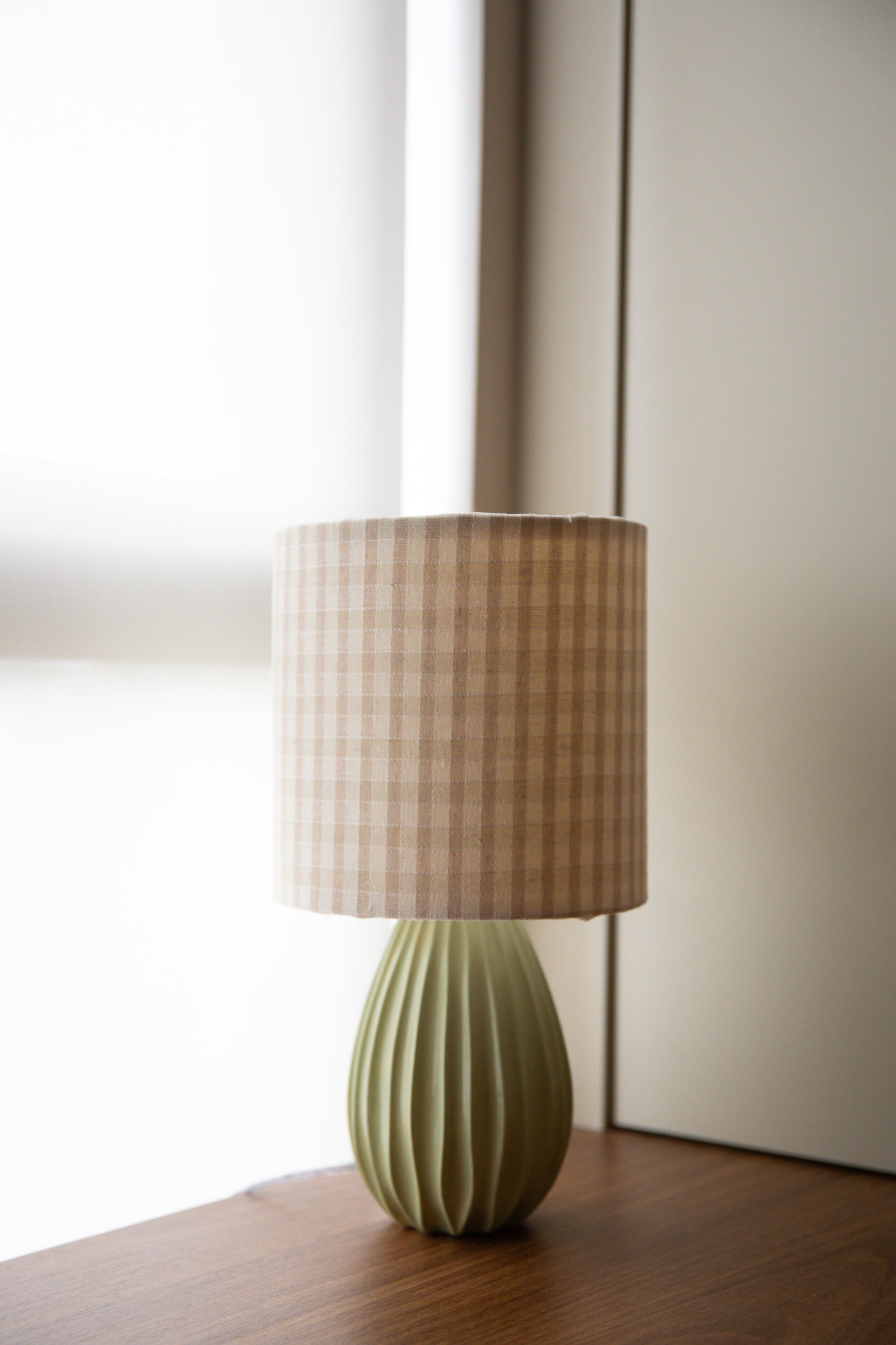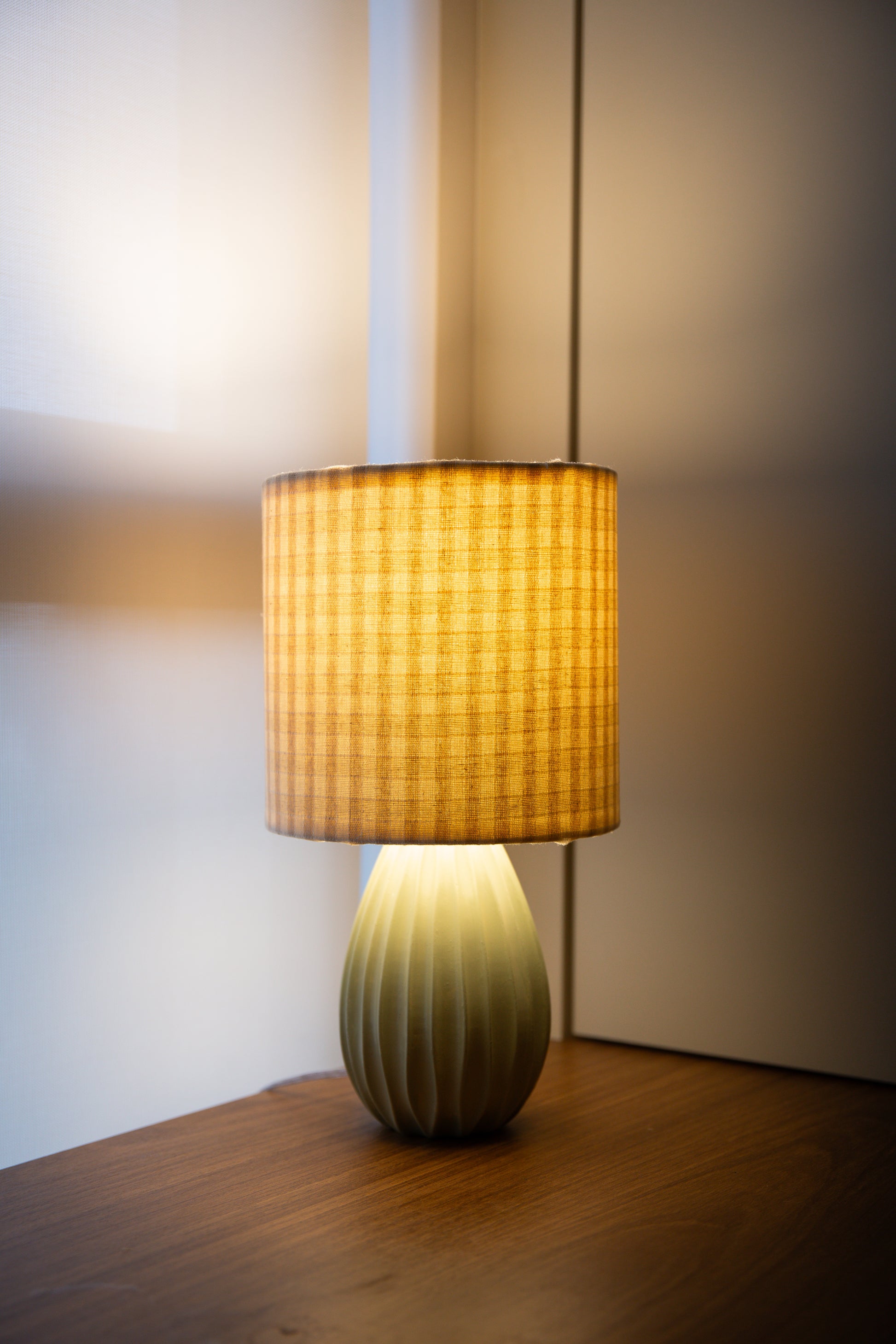 Luminária com base em cerâmica, pintada à mão, garantindo exclusividade em cada peça. Cúpula confeccionada em algodão cru (100% algodão), Linho ou Tricoline, ideal para difusão suave e uniforme da luz. Bocal com acabamento dourado, compatível com soquete E27. Design funcional com estética sofisticada.